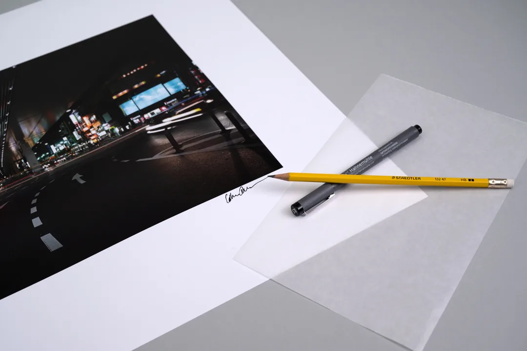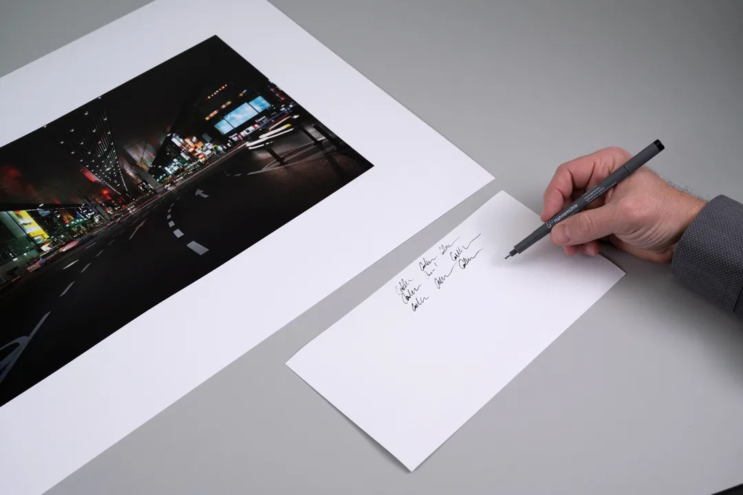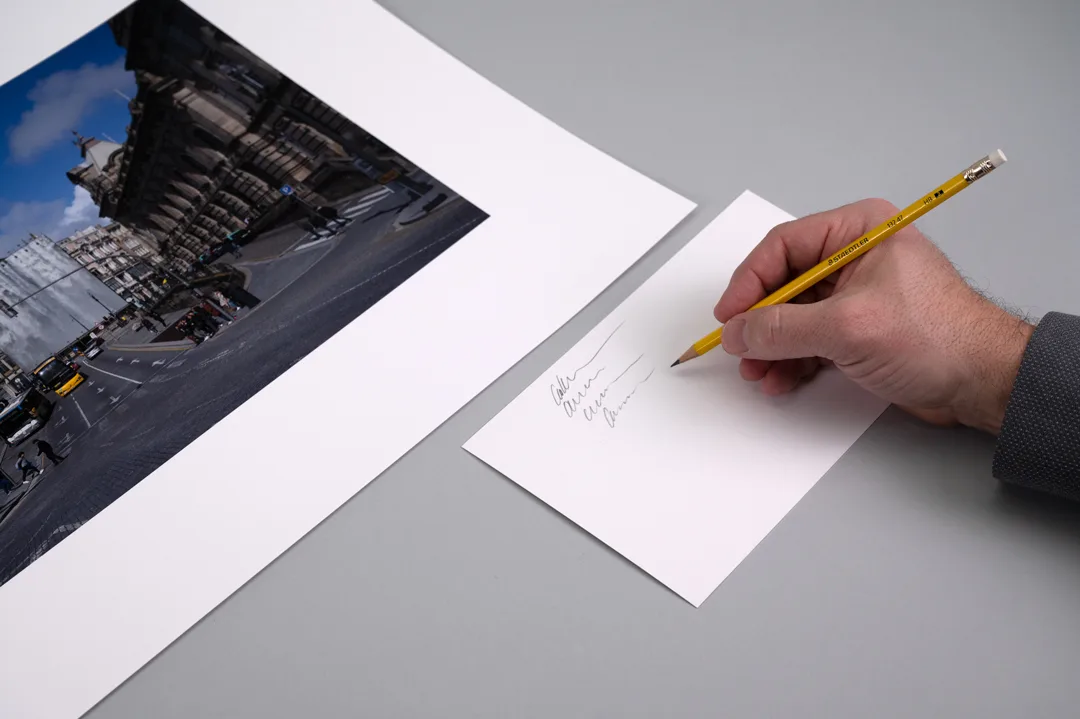 - For matte papers without a gloss coating, we suggest signing in pencil. Pencil is classic, and our suggestion is always use pencil if the paper is suitable. Each paper is going to handle the pencil differently. Experiment with different pencils to find one that is a suitable balance of softness, density and durability.